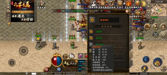 有一种乌木特权,这个可以逐步获取。我已经将其获取满额了。在开启之前,它分为黄金、白金和黑金三种类型。其中黄金能带来5%的金币回收,白金可获得30%的经验加成,黑金则具备5%的打怪真实伤害。