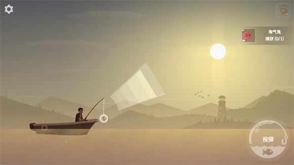 2、点击右下角的“投掷”选项,即可投出鱼饵进行钓鱼。点击时,还能够选择鱼饵抛掷的力度。