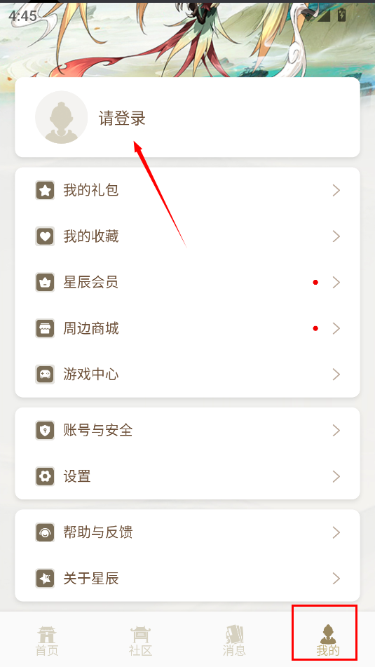 1. 首先切换至“我的”页面,点击页面上方的“请登录”。