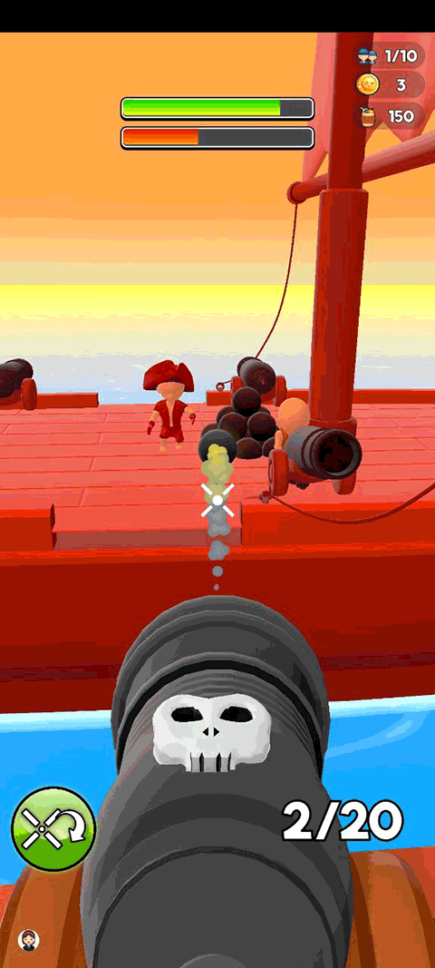 2、船上有2种不同的大炮,一种需要自己瞄准,但伤害更高,另一种直接点击就可以了,大家可以根据自己的玩法进行选择。