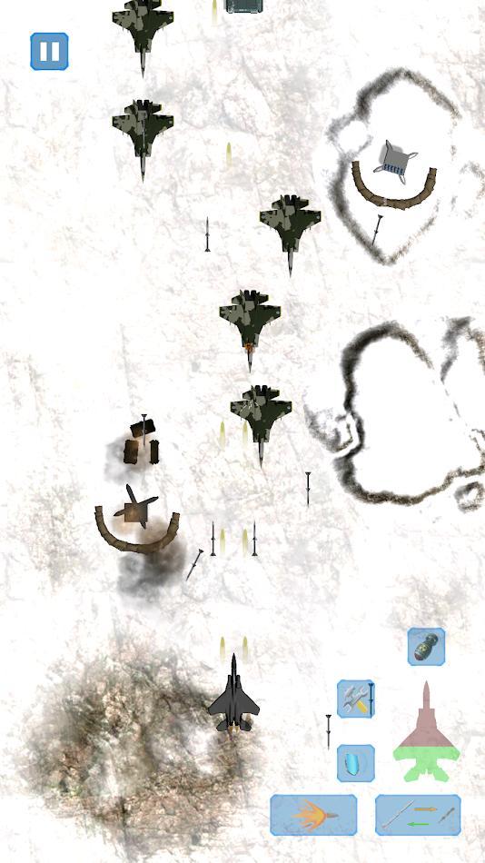 1、游戏中可解锁种类繁多的战机,每款飞机特性各异,在战斗中发挥的作用也不尽相同。 2、当飞机的武器装备逐步升级,战争场景会变得更加绚丽,但我们务必留意并维持飞机的健康生命值。