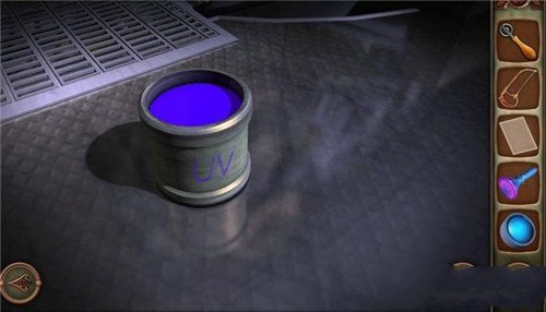 1. 点击左侧带有黄色灯光的楼梯位置,我们会看到一个手电筒。接着点击右边散发蓝光之处,获取一个镜头,同时让手电筒蘸取一下蓝色液体。