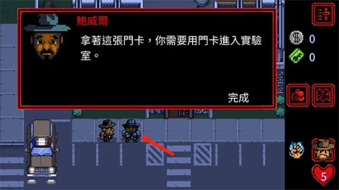 5、当进入第一章节,需要寻找失踪的男孩。抵达目标地点之后,点击路边的警察从而获取【门卡】。