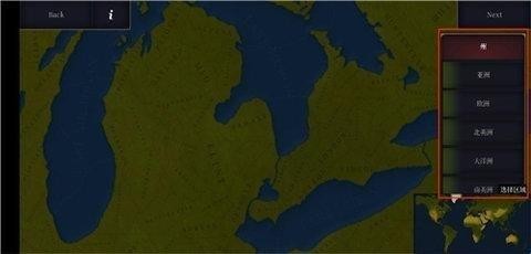 4、进入创建页面,在页面右侧选择洲,然后点击地图来选定势力范围。