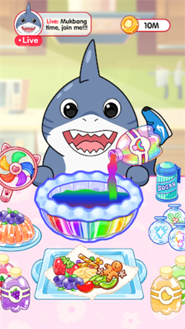 在卡普奇娜吃播秀里,以直播方式亲手制作各式各样的美食,像糖葫芦、冰淇淋以及果冻之类。观众不仅能在线领略这些美食,还能听到令人愉悦的咀嚼声,从而获取更多收益。随着游戏的推进,玩家会解锁更多食谱,而且能直接在超市挑选丰富多样的食材,玩法趣味十足。
