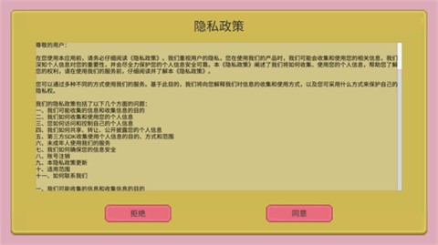 1、首先安装游戏,进入游戏时需同意隐私政策,点击同意即可进入游戏。