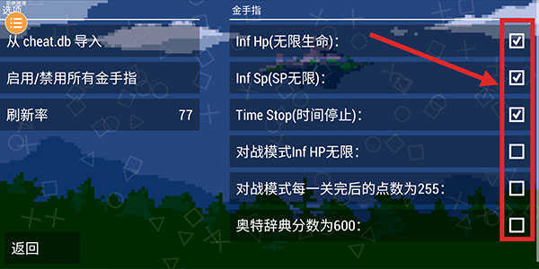 6、这时便能看到我们导入的金手指代码已成功安装,勾选相应的金手指就能开启。