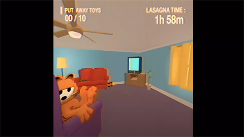 2、此刻你化身约翰,被困于乔恩那诡异扭曲的家中。原本熟悉的空间,刹那间弥漫着阴森恐怖的气息。黄色墙壁之上,尽是令人毛骨悚然的涂鸦。而那红眼橙斑的恐怖加菲猫,正隐匿在黑暗之中,悄无声息地潜伏着,仿佛下一秒就会猛地朝你扑来。